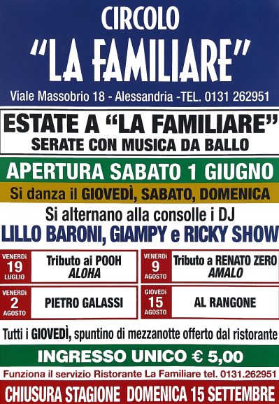 Al Circolo La Familiare di Alessandria si balla tutti i giovedì, sabato e domenica.